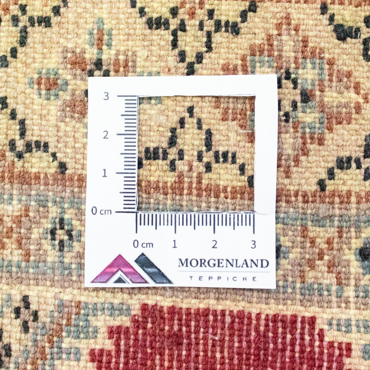 Dieser handgeknüpfte Teppich aus Pakistan besitzt sehr klassische Merkmale der Afghanischen Teppiche. Die Teppiche werden aus Wollgarn hergestellt und sie sind dicht geknüpft. Die Wolle ist weich und damit sehr strapazierfähig. Oftmals wirkt die Wolle leicht glänzend und ist durch ihre dichte trittschalldämpfend. Die geometrischen Muster wiederholen sich auf dem Flor und machen dieses Exemplar somit zu einem wahren Hingucker. Seine Qualität überzeugt jeden Liebhaber orientalischer Teppiche. Es ist ein schöner Teppich, der seinen Preis absolut wert ist. Heutzutage gelten diese Teppiche als die hochwertigsten, die in Pakistan hergestellt werden.