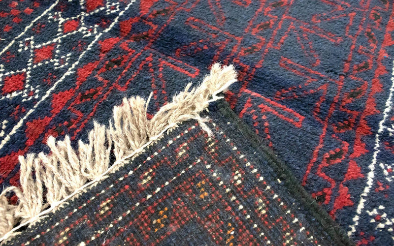 Dieser Belutsch-Teppich ist ein wundervolles Beispiel echter Nomadenkunst. Der Belutsch wird in 3 Ländern geknüpft: im Iran, in Afghanistan und in Pakistan. Seinen Namen hat er vom Stamme der Baluchen, wird aber auch von anderen Stämmen geknüpft. Vorwiegend werden kleine Teppiche bzw. Brücken geknüpft. Große Teppiche sind selten. Sie weisen ein sehr gutes Preis-Leistungsverhältnis auf, sind sorgfältig gearbeitet und werden in vielen verschiedenen, oft geometrischen, Mustern hergestellt. Die Teppiche sind strapazierfähig und sind unter allen modernen Nomadenteppichen als sehr bekannt.