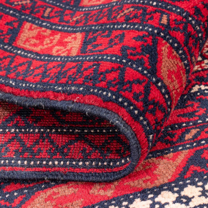 Dieser Belutsch-Teppich ist ein wundervolles Beispiel echter Nomadenkunst. Der Belutsch wird in 3 Ländern geknüpft: im Iran, in Afghanistan und in Pakistan. Seinen Namen hat er vom Stamme der Baluchen, wird aber auch von anderen Stämmen geknüpft. Vorwiegend werden kleine Teppiche bzw. Brücken geknüpft. Große Teppiche sind selten. Sie weisen ein sehr gutes Preis-Leistungsverhältnis auf, sind sorgfältig gearbeitet und werden in vielen verschiedenen, oft geometrischen, Mustern hergestellt. Die Teppiche sind strapazierfähig und sind unter allen modernen Nomadenteppichen als sehr bekannt.