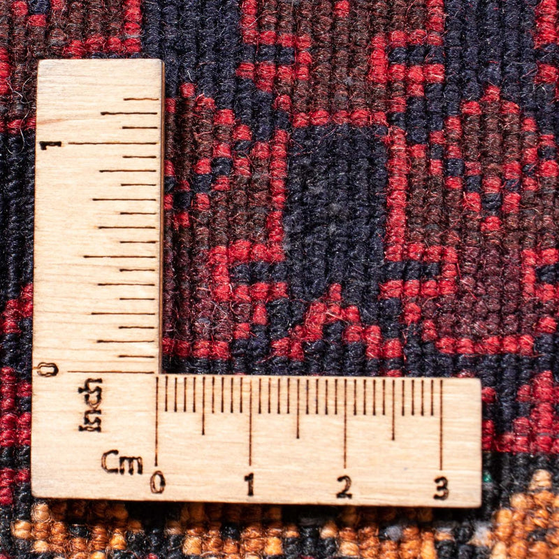 Dieser Belutsch-Teppich ist ein wundervolles Beispiel echter Nomadenkunst. Der Belutsch wird in 3 Ländern geknüpft: im Iran, in Afghanistan und in Pakistan. Seinen Namen hat er vom Stamme der Baluchen, wird aber auch von anderen Stämmen geknüpft. Vorwiegend werden kleine Teppiche bzw. Brücken geknüpft. Große Teppiche sind selten. Sie weisen ein sehr gutes Preis-Leistungsverhältnis auf, sind sorgfältig gearbeitet und werden in vielen verschiedenen, oft geometrischen, Mustern hergestellt. Die Teppiche sind strapazierfähig und sind unter allen modernen Nomadenteppichen als sehr bekannt.