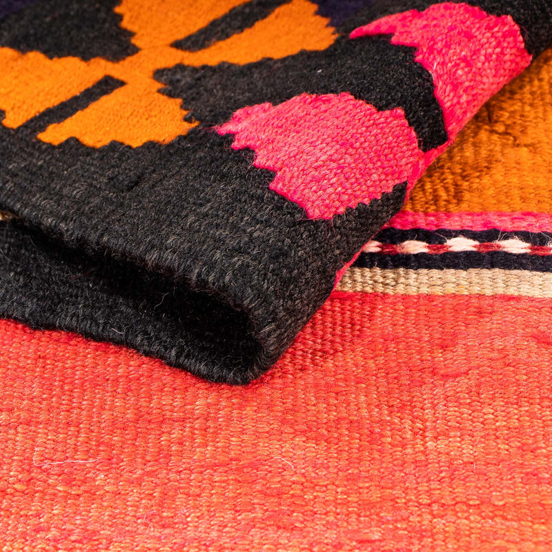 Dieser kunstvolle Kelim - Old besticht das Auge mit seinen angesagten Farben. So bringt er eine moderne und harmonische Eleganz in Ihr Wohnambiente mit ein. Kelim Teppiche sind im Gegensatz zu klassischen Orientteppichen in traditioneller Art handgewebt statt geknüpft. In anderen Ländern werden diese Exemplare auch als Kissen oder Vorhänge genutzt. Diese Teppiche haben einen dünnen Flor, für das feste Obergewebe wird 100% Schurwolle verwendet, welche von Natur aus äußerst pflegeleicht und strapazierbar ist. Als echten Kelim bezeichnen Experten nur Teppiche, welche in der Türkei, dem Kaukasusgebiet, Persien, Afghanistan und Turkmenien hergestellt wurden. Echte Teppiche aus dem Orient eben.