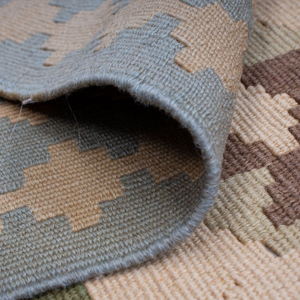 Die handgesponnene Wolle verleiht dem Teppich eine einzigartige, leicht strukturierte Oberfläche mit dezentem Glanz – ein Zeichen echter Handwerkskunst. Gleichzeitig wirkt das Material temperaturausgleichend, schmutzabweisend und sorgt für ein behagliches Raumklima.