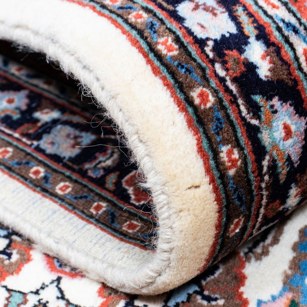 Der handgeknüpfte Teppich aus Moud, einer der größten Städte des Irans, ist ein echtes Kunstwerk. Er wurde aus reiner Naturwolle gefertigt und von erfahrenen Handwerkern sorgfältig geknüpft. Diese hochwertigen Teppiche sind bekannt für ihre außergewöhnlichen Größen und ihre extrem hochwertige Wolle. Neben ihrer Schönheit sind Moud-Teppiche auch äußerst pflegeleicht. Sie können einfach mit einem Staubsauger oder einem Besen gereinigt werden, um Schmutz und Staub zu entfernen. Wenn nötig, kann der Teppich auch mit einem milden Reinigungsmittel und Wasser gereinigt werden. Aufgrund ihrer hohen Qualität und ihrer langlebigen Natur sind Moud-Teppiche eine ausgezeichnete Investition für jeden Teppichliebhaber. Sie sind nicht nur eine schöne Ergänzung für jedes Zuhause, sondern auch eine pflegeleichte und praktische Wahl. Egal, ob Sie sich für einen klassischen oder einen modernen Stil entscheiden, ein Moud-Teppich wird Ihrem Zuhause eine unvergleichliche Eleganz und Stil verleihen.