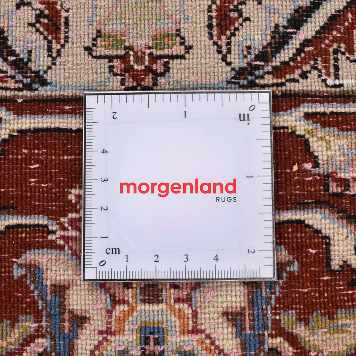 Diese wunderschönen Teppiche werden in der heiligen Stadt Ghom in Zentralpersien geknüpft. Der Ghom Teppich gehört zu den exklusivsten Knüpfkunstwerken des Orients. Es gibt ihn in drei Variationen: Korkwolle auf Baumwolle, Korkwolle mit Seide auf Baumwolle und Seide auf Seide. Selbst die Ghom Teppich-Variation Korkwolle auf Baumwolle ist hervorragend. Korkwolle stammt von der Schur des Lammhalses. Sie ist weich und fetthaltig, extrem schmutzabweisend und äußerst strapazierfähig. Aus der Korkwolle können besonders dünne Fäden gesponnen werden, die in dichten Knüpfknoten ein feines Gewebe ergeben. Die weiteren Ghom Teppich-Variationen sprechen für sich selbst. Je mehr Seidenanteil ein Teppich besitzt, umso feiner ist die Knüpfung, das Muster ist detaillierter, die Qualität des Teppichs ist höher.