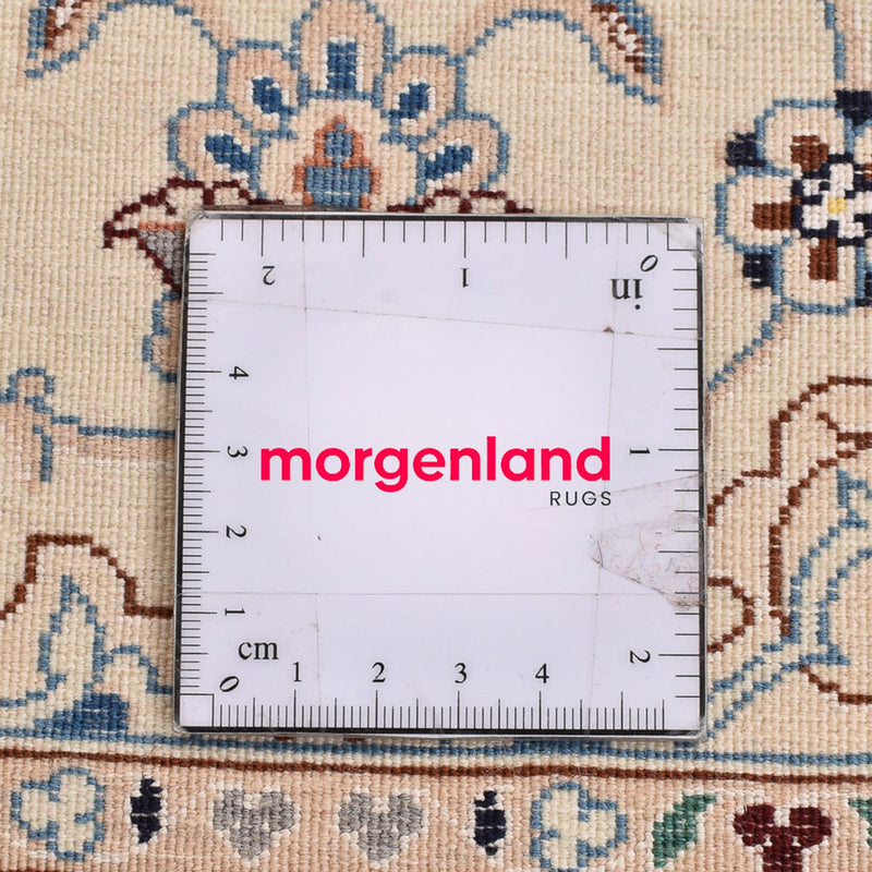Dieser fein von Hand geknüpfte Nain 9La passt sich perfekt in Ihrem Zuhause an. Er besteht aus Korkwolle und feinster Seide, wodurch er sich besonders weich unter den Füßen anfühlt und durch seinen Glanz eine luxuriöse Atmosphäre schafft. Der Perserteppich – Nain – Royal gehört zu der hohen Qualitätsstufe 3 mit circa 250.000 bis 360.000 Knoten pro Quadratmeter. Das heißt, dass er sehr dicht ist und so eine Langlebigkeit garantiert. Egal, welchen Einrichtungsstil sie bei sich im Haus bevorzugen – mit einem Nain Teppich treffen Sie immer die richtige Wahl.