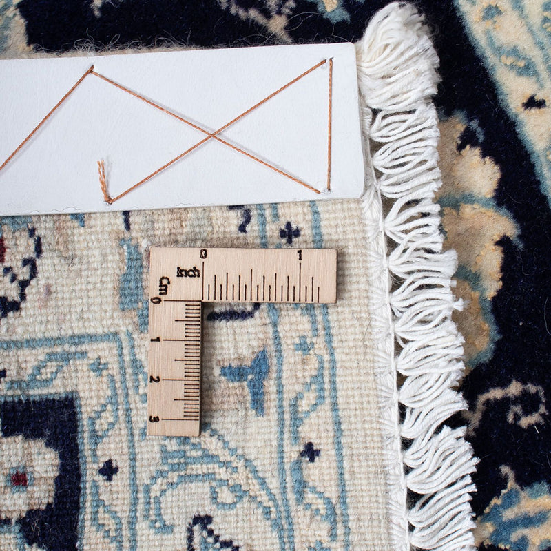 Dieser fein von Hand geknüpfte Nain 9La passt sich perfekt in Ihrem Zuhause an. Er besteht aus Korkwolle und feinster Seide, wodurch er sich besonders weich unter den Füßen anfühlt und durch seinen Glanz eine luxuriöse Atmosphäre schafft. Der Perserteppich – Nain – Royal gehört zu der hohen Qualitätsstufe 3 mit circa 250.000 bis 360.000 Knoten pro Quadratmeter. Das heißt, dass er sehr dicht ist und so eine Langlebigkeit garantiert. Egal, welchen Einrichtungsstil sie bei sich im Haus bevorzugen – mit einem Nain Teppich treffen Sie immer die richtige Wahl.