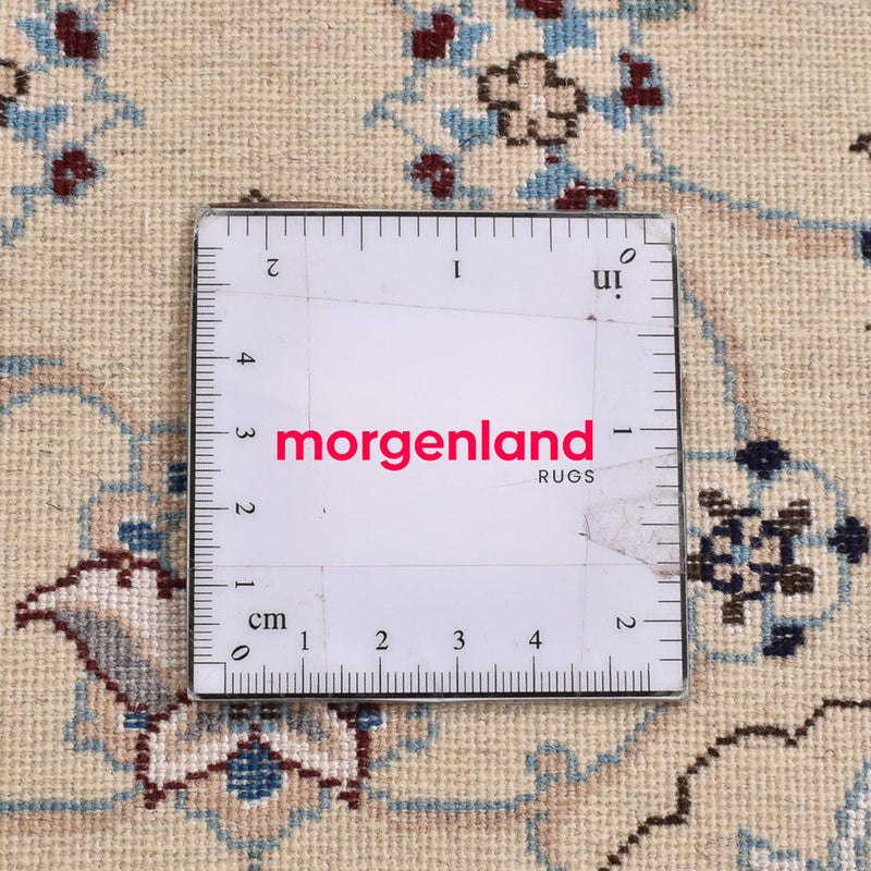 Dieser fein von Hand geknüpfte Nain 9La passt sich perfekt in Ihrem Zuhause an. Er besteht aus Korkwolle und feinster Seide, wodurch er sich besonders weich unter den Füßen anfühlt und durch seinen Glanz eine luxuriöse Atmosphäre schafft. Der Perserteppich – Nain – Royal gehört zu der hohen Qualitätsstufe 3 mit circa 250.000 bis 360.000 Knoten pro Quadratmeter. Das heißt, dass er sehr dicht ist und so eine Langlebigkeit garantiert. Egal, welchen Einrichtungsstil sie bei sich im Haus bevorzugen – mit einem Nain Teppich treffen Sie immer die richtige Wahl.