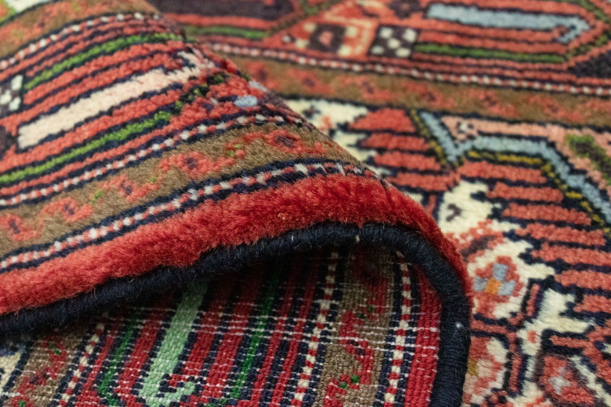 Hamedan - Bezaubernd schön, besonders robust. Dieser Hamedan ist von bester Qualität/guter Qualität. Rustikaler Charme, warme Naturtöne in Indigoblau und Rot und besondere Strapazierfähigkeit zeichnen den Hamedan aus. Handversponnene iranische Hochlandwolle verleiht ihm sanften Glanz. Der „türkische Knüpfknoten“ sorgt für die robuste Oberfläche. Hamedans gelten als die einfachsten unter den Perserteppichen. Sie werden traditionell von Hand in den Dörfern rund um die iranische Stadt Hamedan geknüpft. Jeder Teppich ist ein phantasievolles Einzelstück. Kleine Unregelmäßigkeiten im Muster weisen darauf hin. Hamedans sind wunderschöne Gebrauchsteppiche mit attraktivem Preis-Leistungsverhältnis.
