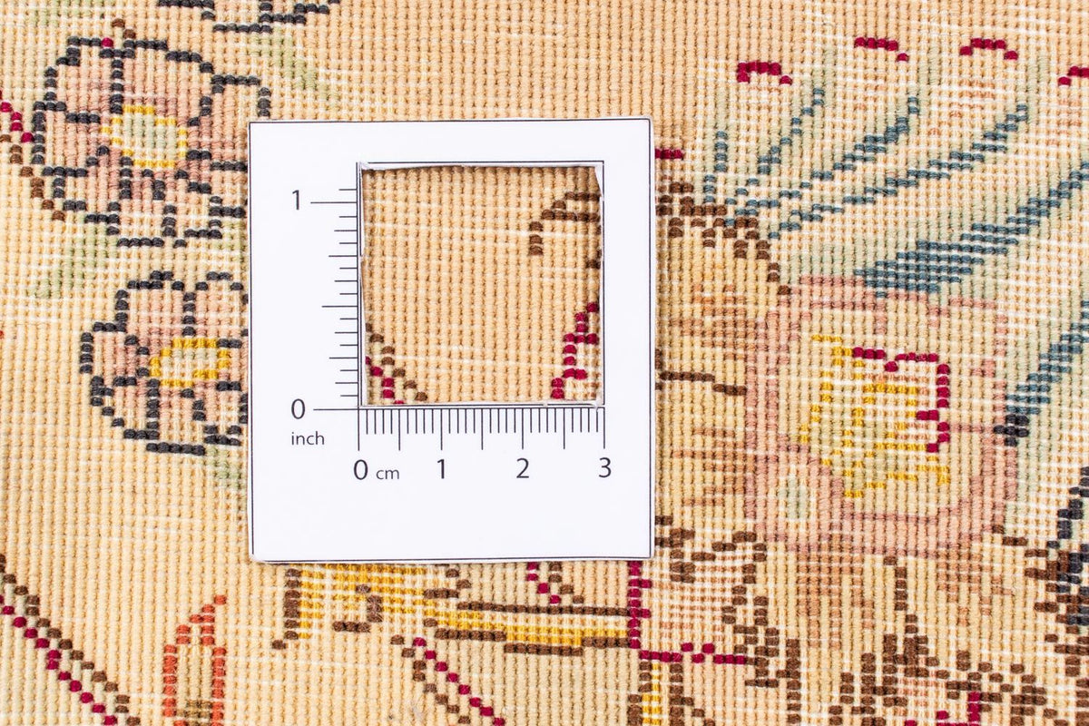 Dieser fein geknüpfte Perserteppich - Täbriz – Royal ist mit hochwertiger Korkwolle, in sorgfältiger und fehlerfreier Handarbeit gefertigt. Der Täbriz 40 Raj gehört zu den schönsten seiner Klasse. Diese Teppiche begründeten den guten Ruf der persischen Knüpfkunst. Er ist ein sehr beliebter Teppich aus einem der besten Knüpfgebiete Persiens. Sie haben oft ein großes, zentral platziertes Medaillon aus schönen Blumenmotiven, ein typisch orientalisches Motiv. Täbriz-Teppiche haben häufig die zusätzliche Bezeichnung Raj. Man unterscheidet zwischen 40, 50, 60, 70, 80 Raj. Je höher die angegebene Zahl ist, desto feiner und dichter ist der Teppich geknüpft. Raj ist eine Qualitätsbezeichnung und bezieht sich auf die Anzahl der Knoten auf einer Breite von ca. 70 mm. Aufgrund der dichten Knüpfung ist der Teppich strapazierfähig, unempfindlich und auch für extreme Benutzung gut geeignet. Klassische Eleganz und Farb-Opulenz zeichnen diesen edlen Teppich aus.