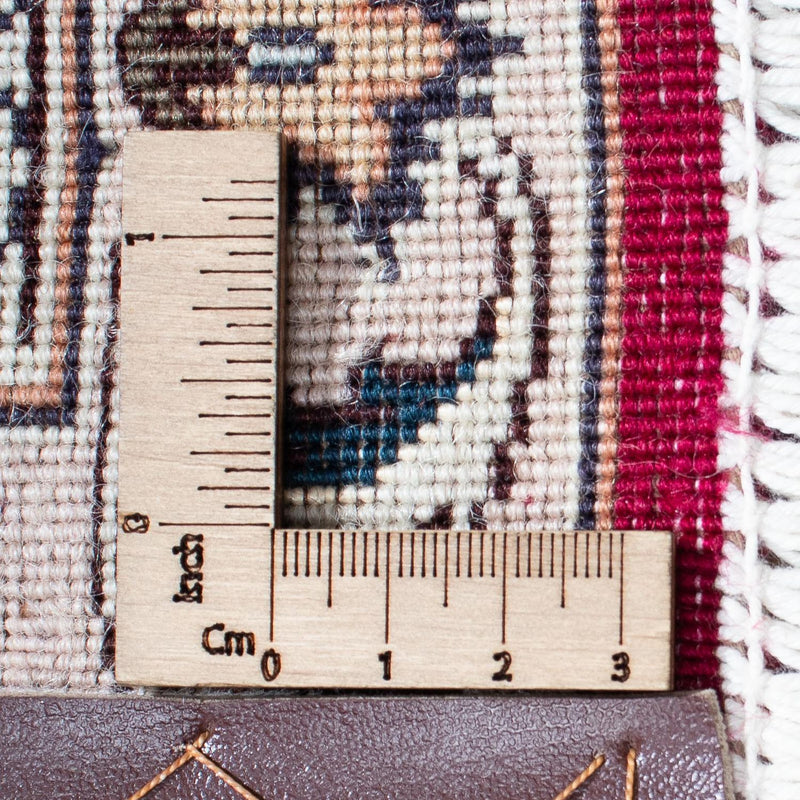 Dieser fein geknüpfte Perserteppich - Täbriz – Royal ist mit hochwertiger Korkwolle, in sorgfältiger und fehlerfreier Handarbeit gefertigt. Der Täbriz 40 Raj gehört zu den schönsten seiner Klasse. Diese Teppiche begründeten den guten Ruf der persischen Knüpfkunst. Er ist ein sehr beliebter Teppich aus einem der besten Knüpfgebiete Persiens. Sie haben oft ein großes, zentral platziertes Medaillon aus schönen Blumenmotiven, ein typisch orientalisches Motiv. Täbriz-Teppiche haben häufig die zusätzliche Bezeichnung Raj. Man unterscheidet zwischen 40, 50, 60, 70, 80 Raj. Je höher die angegebene Zahl ist, desto feiner und dichter ist der Teppich geknüpft. Raj ist eine Qualitätsbezeichnung und bezieht sich auf die Anzahl der Knoten auf einer Breite von ca. 70 mm. Aufgrund der dichten Knüpfung ist der Teppich strapazierfähig, unempfindlich und auch für extreme Benutzung gut geeignet. Klassische Eleganz und Farb-Opulenz zeichnen diesen edlen Teppich aus.