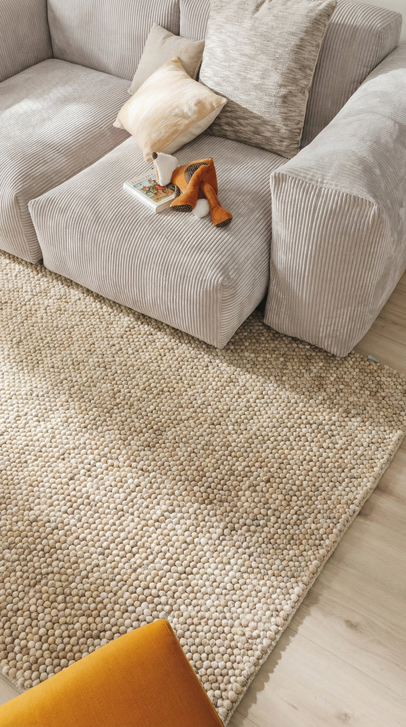 Fusseln sind bei Wollteppichen in den ersten Wochen ganz normal. Sie entstehen durch feine Haare, die sich beim Spinnen lösen – ein Qualitätsmerkmal. Mit der Zeit nimmt die Fusselbildung ab.